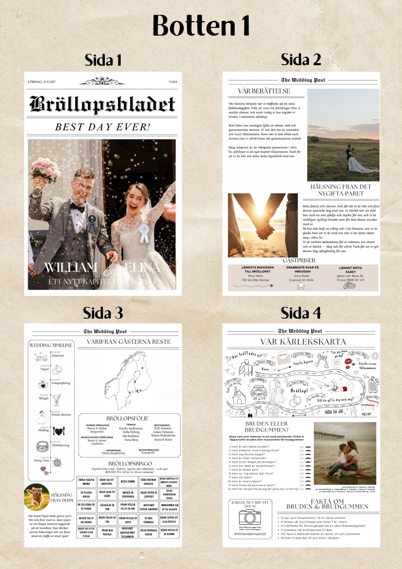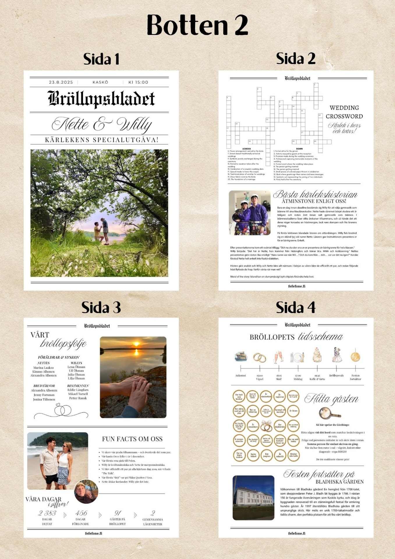 Tidningen bör vara färdig senast två veckor före bröllopsdagen, så att vi hinner trycka och leverera den i tid.